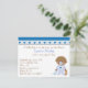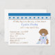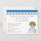 Invitación a la ducha de bebé, con una cinta de gingham azul, con corazones azules, en la parte superior y dulces gráficos personalizados de un bebé. El texto es totalmente personalizable para satisfacer sus necesidades, incluso añadir más texto en la parte posterior si lo necesita.