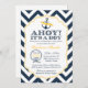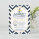 ¡Ahoy! It's a Boy. Pequeña invitación a la ducha de bebé con un gran patrón de chevron y elementos de vela. Ancla y cuerda náutica. Azul y amarillo audaz, ¡hagan una declaración con este diseño!