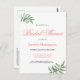 Esta elegante y moderna tarjeta postal con una invitación a la ducha de novia presenta un estilo sencillo con los corales de moda y el estilo botánico verde. Combinar y coincidir con otros elementos de esta colección de bodas. ¿Necesita ayuda para personalizar algo especial? Nos encantaría ayudar.