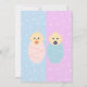 Esta tierna invitación es perfecta para espolvorear duchando a la mujer teniendo un niño y un chica. Su fondo está dividido en rosa y azul. Muestra bebés personalizados, un chica y un niño. Puede personalizar de todo el texto.