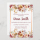 Anillo en la temporada de lluvias otoñales con esta elegante y rústica invitación a la ducha de flores silvestres de otoño. Un ramo de flores rojas, amarillas, violetas y melocotones rodean el texto junto con un rectángulo de color dorado subió para dar un toque de vintage a esta invitación. El texto presenta una combinación de fuentes tradicionales y cursivas para un aspecto único y moderno, además de clásico y atemporal. Esta invitación da la cantidad de belleza natural de la brisa que se encuentra en primavera y verano y la combina con una hermosa colección de colores cálidos, Caídos para una invitación que es perfecta para cualquier ducha de novia, ducha de boda o ducha de bebé.