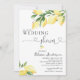 Invitación a la ducha de la boda de limón acuarela. Una invitación de boda audaz con un tema de limón acuarela. El diseño rústico y moderno es ideal para una ducha nupcial o un fiesta con ducha de novia. Personalice la invitación introduciendo sus detalles y, si desea cambiar el estilo y la ubicación del texto, haga clic en el botón "Haga clic en el personalizar más adelante". Vea la colección completa aquí: https://www.zazzle.com/collections/she_found_her_main_squeeze_lemon_bridal_shower-119867915803999104
