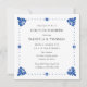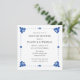 Una ducha de boda es más divertida cuando todos están invitados. Ducha a la pareja feliz con esta invitación de ducha a las parejas de estilo talavera. Esta invitación mexicana se inspira en las bellas baldosas y el arte folclórico que se encuentran en México y en todo el suroeste americano. El llamativo color azul y la tipografía clásica crean un ambiente elegante, moderno y tradicional. A tus invitados les encantará recibir esta hermosa invitación de talavera.