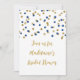 Invitaciones a la ducha de novias en tonos azules y dorados.