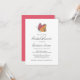 Estas invitaciones a la ducha de novias, muy sencillas, tienen mucho encanto, ya que cuentan con un elegante guión de caligrafía y un ilustracion de mariposa acuarela en rojo suave y varilla de oro. Los detalles del evento se muestran en secuencias de comandos de color gris carbón y estilos de tipografía de bloques. La carta se revierte a la sandía sólida de rojo.