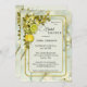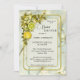Elegante invitación a la ducha nupcial con limones acuarelas y cítricos con hojas florales sobre un estilizado fondo de huerto primaveral.