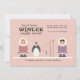 ¿Planeando una ducha en pleno invierno? Esta es una linda invitación para la ocasión. La tarjeta contiene un esquimal masculino y femenino junto a un pingüino y polos de pesca. La nieve ligera está cayendo.