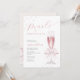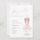 Esta elegante invitación incluye una copa de champán rosa, adornada con un arco rosado y perlas, con perlas adicionales como telón de fondo. Perfecto para una celebración moderna de brunch o brunch y burbujeante, el diseño de acuarela y el guión elegante de caligrafía añaden un toque de sofisticación. Personalízalo con los detalles de tu evento para crear una invitación elegante y memorable.