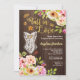 Elegante invitación de ducha de lencería para enamorarse con flores de acuarela. El título de la fiesta se puede cambiar para adaptarse a cualquier evento. Madera rústica con flores de acuarela y corsé de encaje elegante. Decorado con fuentes doradas falsas. Perfecto para la temporada de otoño, Día de Acción de Gracias.