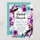 Boho Moda Floral Wreath Morado y Verde azulado Flores y plumas Boda Bridal Shower Invitación con estilo de escritura de brocha de moda! ~ Revisa mi tienda para ver toda la suite boda con este diseño!