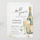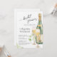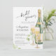Una invitación a la ducha de novia en un estilo delicado, elegante y minimalista, con un ilustracion con una encantadora acuarela de una botella de vino y copas de vino.