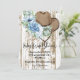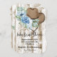tarjeta de invitación a la ducha de novia con diseño floral azul y acentos marrones.