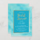 Esta elegante y moderna y pequeña ducha de novia cuenta con un fondo de acuarela azul pintado a mano, que recuerda al océano, la playa o el cielo. También incluye las palabras "Bridal Shower" en un moderno tipo de letra dorada, junto con un marco dorado a juego. Una forma bonita y elegante de invitar a los huéspedes a su evento especial previo al boda.
