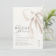 Invitación A La Ducha Bridal Bow Con Elegancia Blanca. Esta sofisticada invitación cuenta con una clásica proa blanca de marfil y un romántico guión manuscrito, perfecto para una moderna y caprichosa ducha de novia. El elegante diseño, con una cinta de satén de marfil y el encanto de la coqueta, le da un toque de clase a su evento. Personalizar el texto para que coincida con los detalles del evento y cree una invitación eterna para su día especial.