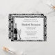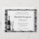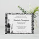 Elegante invitación a la ducha de novia con una botella de champán y gafas. El fondo es un elegante patrón blanco y negro. Personalizar con tu información de ducha.