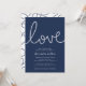 Las invitaciones a la ducha de moda marrón en la costa presentan un estilo náutico clásico en azul marino y blanco intemporal. "Amor" aparece en la parte superior con letras de nudo de cuerda azul marino. Personaliza con tus detalles de ducha de novia bajo una combinación de moda de letras de serif y sans serif. Perfecto para las duchas nupciales con temática náutica, veraniega o playera. Las invitaciones se revertirán a un patrón de nudos de cuerda flotante en la marina en blanco.