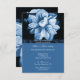 Invite a los huéspedes a su próxima ducha de boda con este atractivo diseño de invitación con una flor azul sobre un fondo azul y negro de dos tonalidades. El texto de personalizable le permite alterar las fuentes, cambiar los colores y tamaños del texto según desee. También está disponible un papel boda que coincide con este diseño.