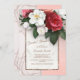 Una elegante invitación con flores blancas y rojas sobre un fondo de mármol.<a href="https://www.freepik.com/free-photos-vectors/background">Antecedentes creados por rawpixel.com - www.freepik.com</a>). <br/>() La tarjeta es fácil de personalizar con su texto, tipo de letra, color de letra, opciones de forma de papel y elección de seis tipos de papel.<br/>() ¿No es exactamente lo que buscas? Todos nuestros productos pueden ser personalizados diseñados para satisfacer sus necesidades sin cargo adicional.<br/>() Simplemente contáctenos en askcottonlamb@gmail.com.<br/>() Coordinar los productos disponibles: ¡Simplemente pregúntennos!"