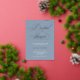 Relieve metalizado MYRA | Esta elegante tarjeta de invitación a la ducha de novia está diseñada para bodas románticos o formales. El fondo azul polvoriento, la maravillosa caligrafía de guión en Relieve metalizado plateado real, y el estilo formal del texto de copia combinado hacen de esta colección intemporal un diseño perfecto para una papelería boda clásica. También una buena elección para bodas de cuento de hadas.