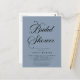 Invitación a la ducha de novia con escritura moderna mínima. Sin embargo, el azul polvoriento es el blanco de muchos colores. También puede cambiar fácilmente el color de fondo de la herramienta de diseño para coordinarse con el tema boda.