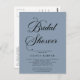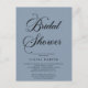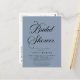 Invitación a la ducha de novia con escritura moderna mínima. Sin embargo, el azul polvoriento es el blanco de muchos colores. También puede cambiar fácilmente el color de fondo de la herramienta de diseño para coordinarse con el tema boda.