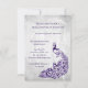 Crea una invitación única a todos los tuyos con una invitación a la ducha de novias con hojas de pavo real. El diseño de la invitación presenta un fondo gris claro con un pavo real violeta con un embellecimiento de la vid. Personalice los nombres del novio y la novia junto con los detalles de la ducha de novia. También hay material de boda adicional disponible con este diseño. ¿Necesita ayuda con la personalización? Por favor, contáctame y elaboraré la redacción y los detalles para adaptarlos a su satisfacción.