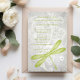 Crea una invitación única a todos los tuyos con una invitación a la ducha de novia con una libélula verde. El diseño de la invitación presenta una libélula vibrante contra un elegante fondo de pardo gris y vid floral. Personalice los nombres del novio y la novia junto con los detalles de la ducha de novia. También hay material de boda adicional disponible con este diseño. ¿Necesita ayuda con la personalización? Por favor, contáctame y elaboraré la redacción y los detalles para adaptarlos a su satisfacción.