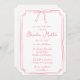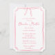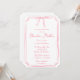 Este elegante modelo de invitación a la ducha de novia, de estilo manuscrito, presenta un diseño clásico dibujado a mano con un caprichoso ilustracion de arco en la parte superior. Se presenta en un divertido esquema de color rosa y blanco, perfecto para marcar el tono de una celebración única y femenina.
