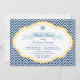 Esta invitación a la ducha nupcial está dedicada al tema náutico. En el fondo, hay un patrón zigzag azul marino y blanco chevron con un marco curvado dorado y blanco en el medio. En la parte superior hay un volante de barco azul marino con un corazón en el medio. Debajo, Bridal Shower está escrita en una letra cursiva en una suave bandera azul. A continuación, se puede personalizar toda la información de la ducha de novia. Copyright GraphicMarket