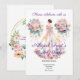 Invitación a la ducha de novia con una novia vestida con un elegante vestido de novia. Flores rosas. Texto editable para que pueda personalizar fácilmente. Invitación al frente y RSVP al revés.