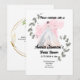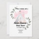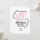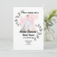 Invitación a la ducha de novia con una novia vestida con un elegante vestido de novia. Nube rosa y follaje alrededor de la imagen. Texto editable para que pueda personalizar fácilmente. Invitación al frente y RSVP al revés.