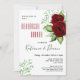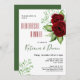 Una hermosa cena de ensayo para la temporada de Navidades. Los colores tradicionales de las vacaciones, verdes y rojas, se destacan por medio de rosas rojas y follaje verde. Puede cambiar el color del reverso a blanco o un color de cortesía diferente de su elección.