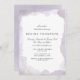 Diseño elegante de una invitación a la boda con una acuarela púrpura clara pintada en un fondo blanco diseñado por Shelby Allison.