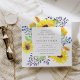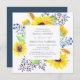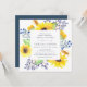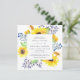 Nuestra invitación a la ducha de novia Flowerfields en un formato cuadrado único enmarca tus detalles de ducha de novia con girasoles color amarillo, hojas verdes y púrpura y azul. Una buena elección para las duchas rústicas de verano o de otoño en ambientes campestres o exteriores.