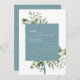 Invitación moderna a la ducha de novia Eucalyptus. Foliage. Fondo blanco y Verde azulado.