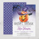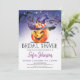 Invitación a la ducha nupcial con tema de Halloween con gorra de brujas y jack-o-lantern.