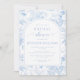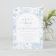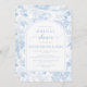 Sofisticada y refinada, esta clásica invitación a la ducha de novias presenta un delicado patrón de Chinoiserie adornado con motivos florales en azul claro y blanco, perfecto para una celebración de primavera o verano.