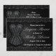 ¡Esta invitación a una ducha de novia negra tiene un bonito corsé que es perfecto para una fiesta de soltera de lencería! En el corsé hay un lindo encaje y lo mismo está en la parte inferior y superior de la invitación. ¡La invitación es bonito y muy chica! ¡También se podría usar para un gótico o fiesta gótico!
