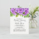 Crea solo para ti, una simple y elegante invitación a la boda incluye hermosas hortensias moradas en flor, perfectas para el boda de temas púrpura. Personalizable completo, haga clic en el botón personalizar para agregar, borrar o cambiar el tamaño y color del texto a su gusto. Todas las invitaciones para bodas están disponibles con varios accesorios que hacen coincidir.