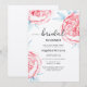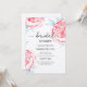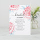 Invitación a la ducha de novias decorada con bonitas peonías acuáticas, flores rosas suaves y hojas de esmeralda.
