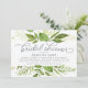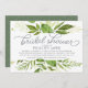 La moderna invitación a la ducha de puentes botánicas verdes incluye un borde superior e inferior de exuberante vegetación acuática en tonos de bosque y verde helecho, con acentos decorativos de tipografía y letras grises y azules ahumadas. Personalice con su texto de invitación a ducha de novia deseado utilizando los campos de plantilla. Diseñado para coordinar con nuestra invitación a Wild Meadow y nuestra colección de artículos de papelería.