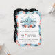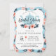 Hermosa moda floral estilo vintage té fiesta temática ducha de novia diseño invitación con tetera polka dot de Relieve metalizado oro vintage azul con hermosas flores florales acuáticas sobre un fondo azul. Se incorporan en la tetera toques de polika de oro falso para crear una moda de estilo clásico vintage. En torno a la tetera hay hermosos arreglos florales rosas y verde azuladas hojas profundas que dan un toque femenino. En el reverso de la invitación a la ducha de novias, el fondo negro con los puntos de polka azul moda y la tetera de cobre contrasta maravillosamente con la parte delantera de la invitación. Todos los ilustraciones contenidos en esta invitación azul vintage de fiesta de té floral con ducha de novia son obras de arte originales hechas a mano por Moodthology. Puede personalizar el tamaño del texto, el color del texto, el tipo de letra y el diseño para su preferencia personal de diseño.
