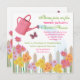 El riego rosa puede hacer que las flores se duerman contra una valla de piquete con una sola mariposa rosa (móvil) en esta bonito invitación a una fiesta en el jardín de novias. Ideal también para un almuerzo femenino, un cumpleaños o una ducha para bebés. ¿Necesita cambios? No hay problema, solo contacta conmigo. Ilustracion dibujado a mano por McBooboo