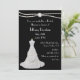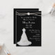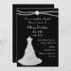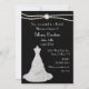 Hermosa invitación a la ducha matrimonial en negro, con gráficos de una doble hebra de perlas en la parte superior, y un vestido boda blanco en la parte inferior izquierda. El texto en blanco es totalmente personalizable para satisfacer sus necesidades. Elegante invitación que la novia será apreciada por los años venideros.