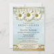 Invitación a la ducha de novias con flores de margarita sobre un fondo pintado con madera y encaje templados. Hermoso si buscas un ambiente de verano y rural.