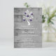 Crea una invitación única a todos los tuyos con una invitación a la ducha de novias con un árbol púrpura de corazones. El diseño de la invitación se basa en un fondo de madera gris adornado con un árbol con corazones floridos en sus ramas. Personalice los nombres del novio y la novia junto con los detalles de la ducha de novia. También hay material de boda adicional disponible con este diseño.