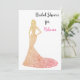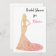 Invitación a la ducha nupcial - Tema de espuma y brillantez. Espléndida silueta de una hermosa novia para estar en un vestido elegante y glamuroso. Personalizar el nombre de la novia en el frente. Debajo del lindo dicho en el personalizar trasero la información de rsvp.