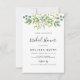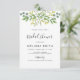 Esta minimalista y moderna ducha de novia cuenta con hojas de eucaliptos de color agua y follaje sencillos y románticos sobre un falso marco geométrico de oro rosa.