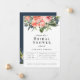 Decoración floral de color bonito en tonos azul marino, coral, rubia y verde, invitación a la ducha de novia. Moda y diseño de tipografía simple.