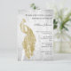 Crea una invitación única a todos los tuyos con una invitación a la ducha de novia Gold Peacock. El diseño de la invitación presenta un pavo real elegante con un delicado follaje y un fondo de grano. Personalice el nombre de la novia junto con los detalles de la ducha de novia. También hay material de boda adicional disponible con este diseño.